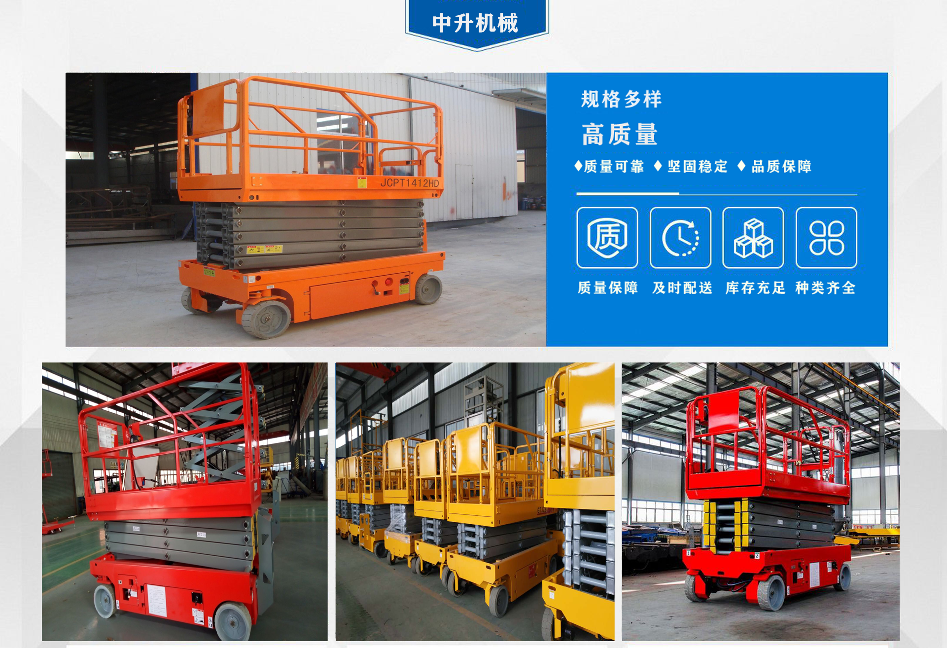 濟(jì)南中升機(jī)械制造有限公司主營(yíng)自行式升降機(jī),自行走升降機(jī),自行式升降平臺(tái),移動(dòng)升降平臺(tái),移動(dòng)式升降平臺(tái)等產(chǎn)品,產(chǎn)品廣泛用于廠房維護(hù)、工業(yè)安裝、設(shè)備檢修、物業(yè)管理、倉(cāng)庫(kù)、航空、機(jī)場(chǎng)、港口、車(chē)站、加油站、體育場(chǎng)、展覽館等多種行業(yè)和場(chǎng)所, 公司設(shè)備精良、工藝合理、檢測(cè)手段齊全,技術(shù)力量充足,公司創(chuàng)立伊始即本著“專注、專心”的經(jīng)營(yíng)理念,依托技術(shù)團(tuán)隊(duì)優(yōu)勢(shì)和設(shè)備硬件保障,全力打造良心的升降平臺(tái)企業(yè)?! ∥夜臼冀K以“品質(zhì)為本,服務(wù)至上”作為企業(yè)宗旨。只要你訂購(gòu)了我公司的產(chǎn)品,無(wú)論你身處何方,我們都會(huì)及時(shí)派出技術(shù)人員為你服務(wù)!...